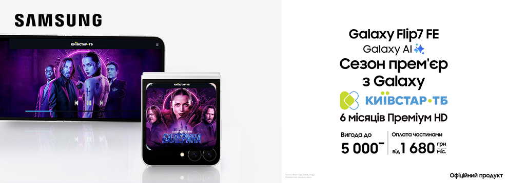 «Преміум HD» від «Київстар ТБ» на 6 місяців до смартфонів та планшетів Samsung у подарунок.