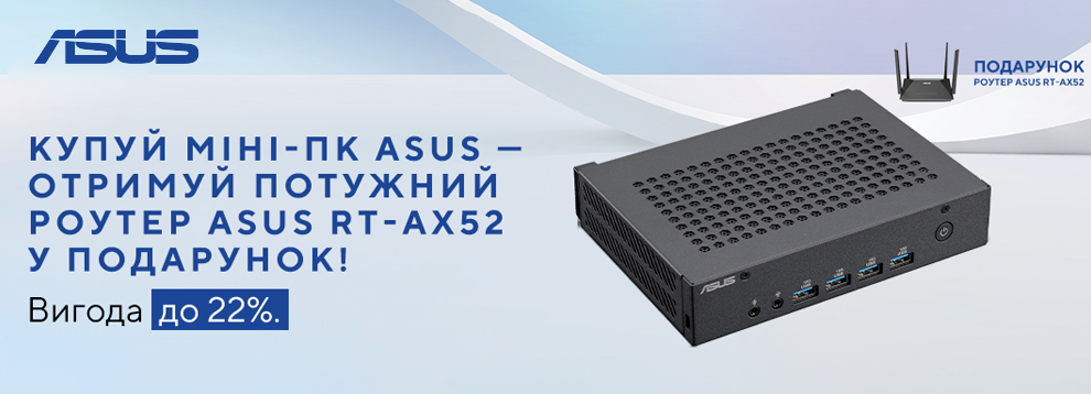 Купуй міні-ПК ASUS та отримуй фірмовий роутер RT-AX52 у подарунок! Вигода до 22%