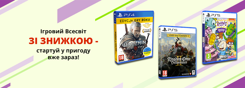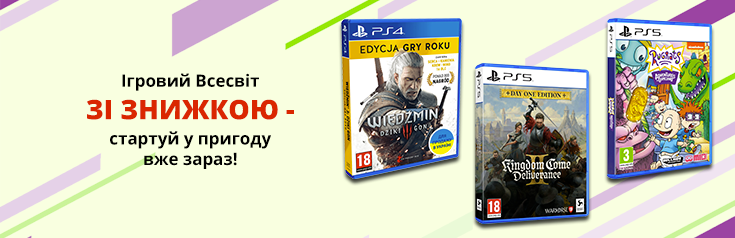 - Поринь у найкращі ігрові світи за вигідними цінами! Обирай платформу, стиль та настрій — і стартуй у пригоду, яка затягне з перших хвилин. *Акція діє при покупці готівкою або кредитною карткою. Ціни вказані у гривнях, кількість товару обмежена. Ціни та умови пропозиції можуть бути змінені протягом дії акції. Зображення товару на фото може відрізнятися від фактичного. Доступно в кредит, розстрочку чи оплату частинами. Умови кредитування визначаються фінансовою установою індивідуально кожному клієнту. Фінансова установа залишає за собою право відмовити у видачі кредиту без пояснення причин. Акція підсумовується з іншими пропозиціями. Акційна пропозиція дійсна на території України, за винятком тимчасово окупованих територій та територій населених пунктів, що розташовані в зоні бойових дій та на лінії зіткнення.