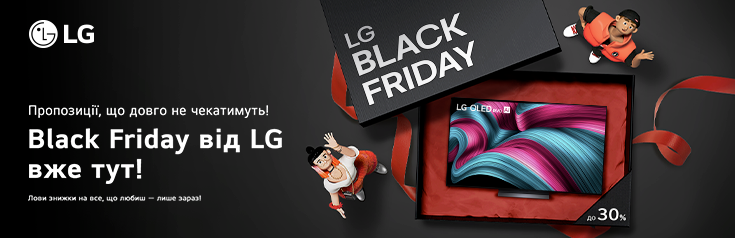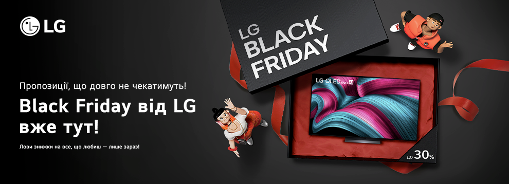 - На телевізори LG діятимуть спеціальні ціни зі знижкою до 30%. *Кількість товару за акційними цінами обмежена. Ціни та умови пропозиції можуть бути змінені протягом дії акції. Зображення товару на зображенні може відрізнятись від фактичного.