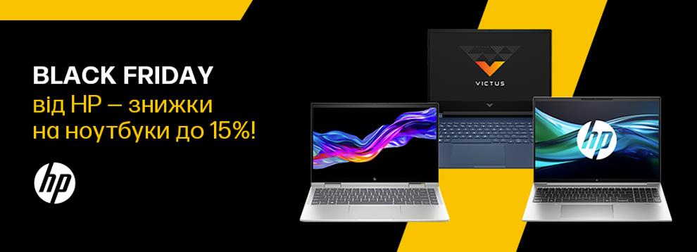 - Зустрічай Чорну п’ятницю разом із ноутбуками HP! Потужність для роботи, навчання та розваг тепер доступна ще вигідніше. Лови знижки та обирай модель, яка підкреслить твій ритм життя. *Акція діє при покупці готівкою або кредитною карткою. Ціни вказані у гривнях, кількість товару обмежена. Ціни та умови пропозиції можуть бути змінені протягом дії акції. Зображення товару на фото може відрізнятися від фактичного. Доступно в кредит, розстрочку чи оплату частинами. Акція підсумовується з іншими пропозиціями. Акційна пропозиція дійсна на території України, за винятком тимчасово окупованих територій та територій населених пунктів, що розташовані в зоні бойових дій та на лінії зіткнення.