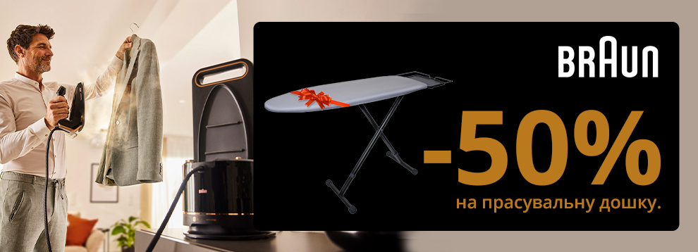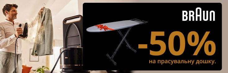 Купуй прасувальну систему Braun, та отримай знижку -50% на прасувальну дошку!
