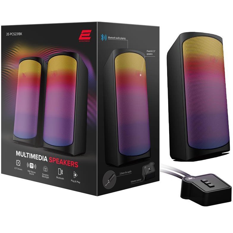 Удосконаліть якість та гучність звучання вашого ноутбука або настільного ПК, відкривши для себе акустичні системи для ПК від 2E серії PCS. 2Е колонки для ПК - це не тільки якісний стереозвук, а й стильний додаток до робочого столу вдома або в офісі. Пориньте повністю у прослуховування музики, дії улюбленого фільму або серіалу, улюблену відеогру, слухайте аудіокниги та багато іншого.