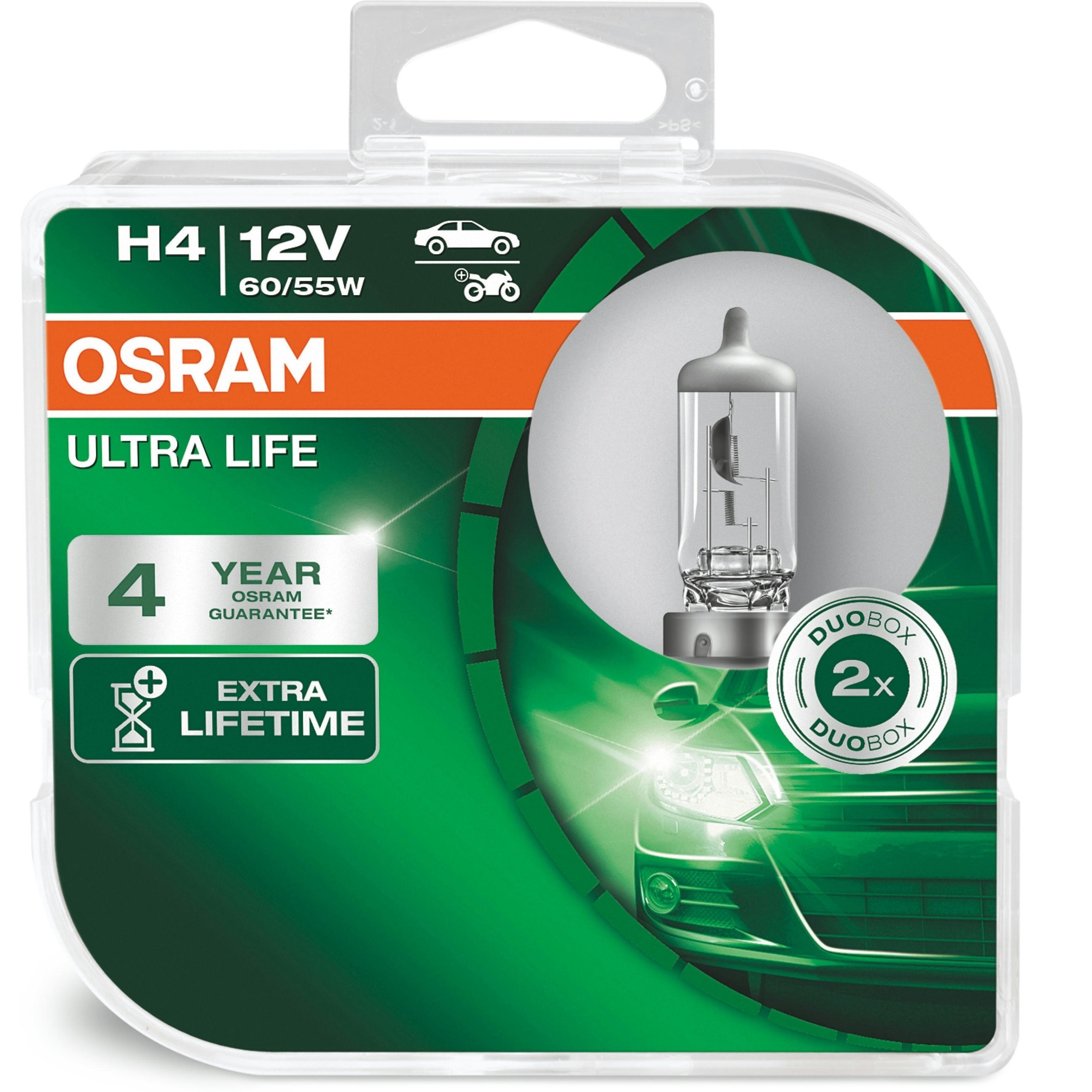 Відгуки про Лампа Osram галогенова 12V H4 60/55W P43T Ultra Life, Duobox (2шт) (OS_64193_ULT-HCB)