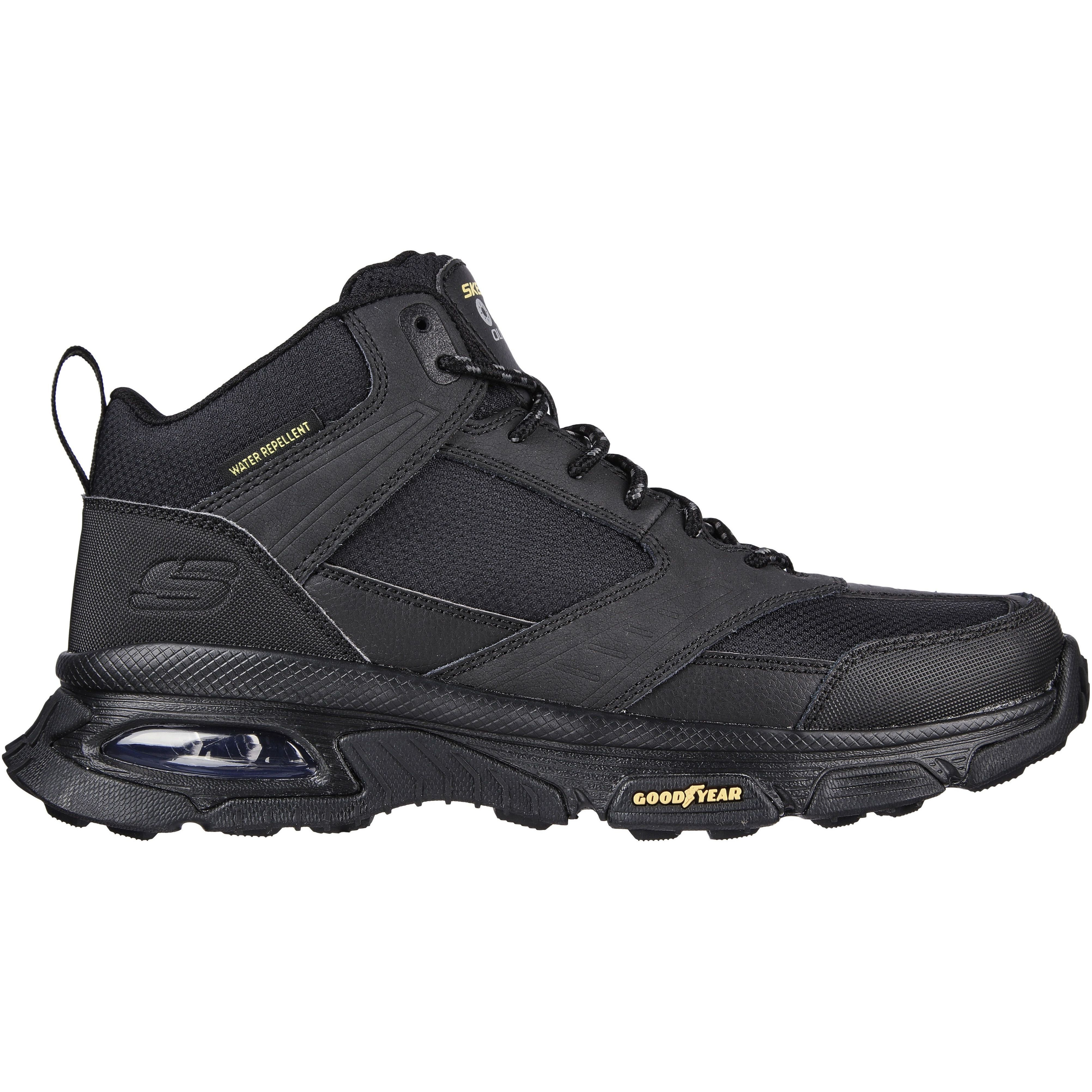 Підготуйся до виняткового зчеплення та комфорту в черевиках Skechers Skech-Air Envoy - Bulldozer. Ці водовідштовхувальні черевики на шнурівці мають верх зі шкіри та сітки з устілкою Skechers Memory Foam з повітряним охолодженням, видиму повітряну вставку Skech-Air та високоміцну підошву Goodyear Performance Outsole.
