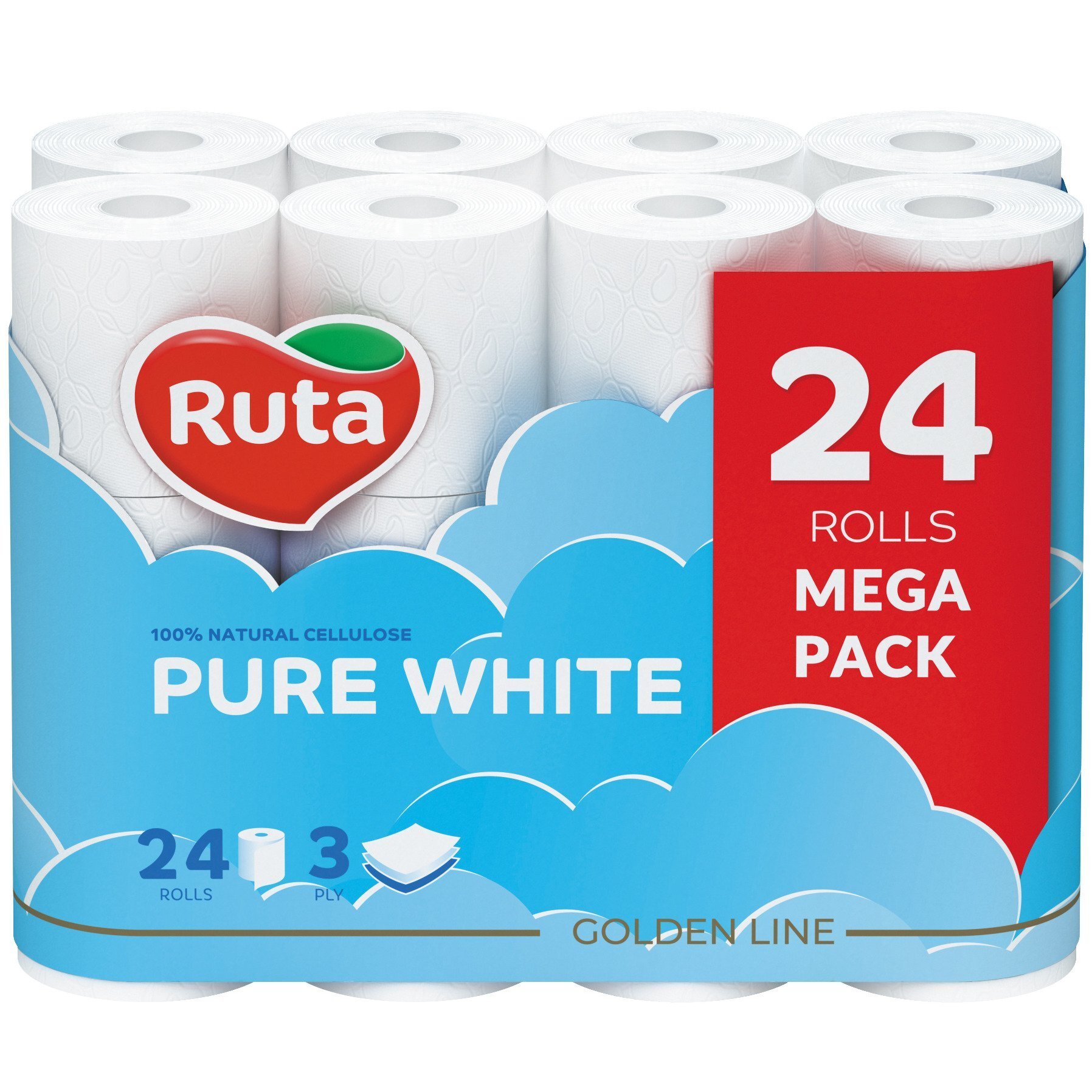 Ruta Pure White – пропозиція для тих, хто у всьому цінує натуральність. Білий туалетний папір без барвників та ароматизаторів підійде для чутливої шкіри. Ультрам'який дотик забезпечують короткі листяні волокна целюлози у складі.