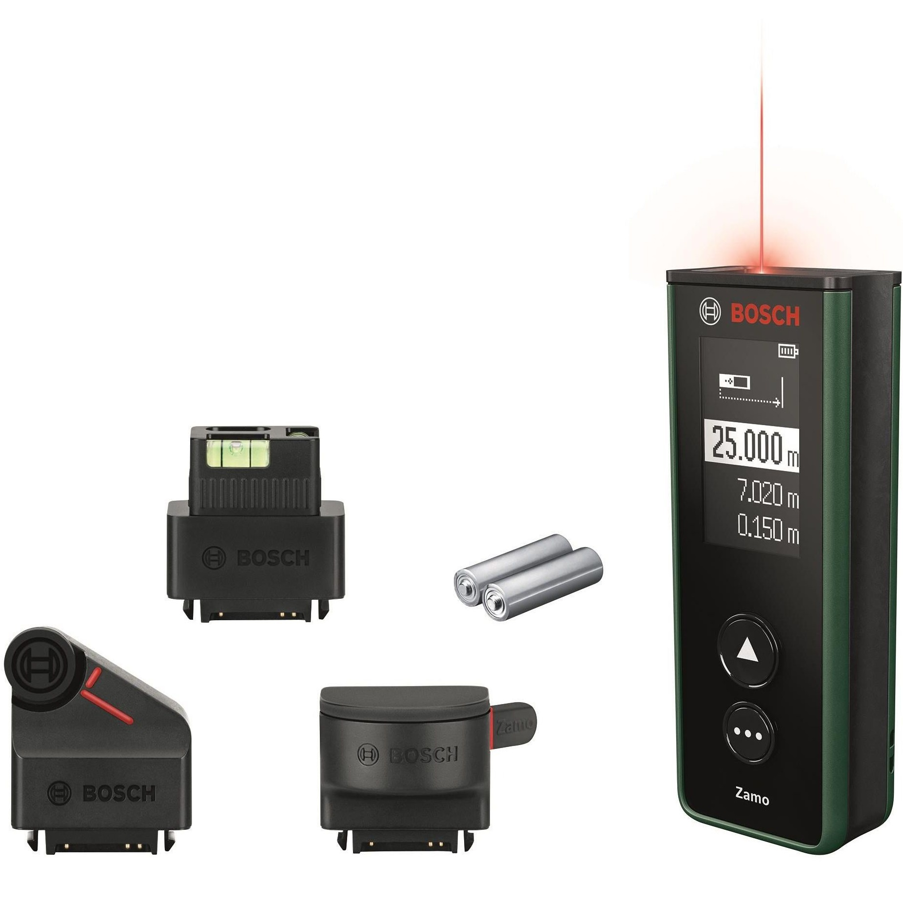 Точне вимірювання висоти, довжини та інших відстаней за допомогою лазерної технології. Далекомір Zamo може вимірювати відстань до 25 м за лічені секунди. Відстані від 0,15 м до 25 м можна вимірювати з точністю +/-2 мм. Базовою площиною для вимірювань є задній край далекоміра.
