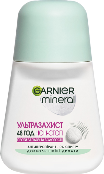 Garnier Mineral Ультразахист забезпечує 48-годинний захист від вологи та неприємного запаху, даруючи відчуття сухості та комфорту.