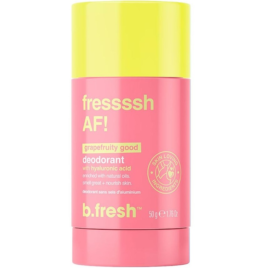 З перших секунд, коли ви торкнетеся дезодоранту b.fresh Fressssh AF Grapefruity Good, вас обіймає хвиля свіжості. Ніби краплі сонячного світла падають на стиглий грейпфрут, вивільняючи його цитрусовий, соковитий аромат і заряджаючи енергією на весь день. Продукт не містить спирту, парабенів і солей алюмінію.