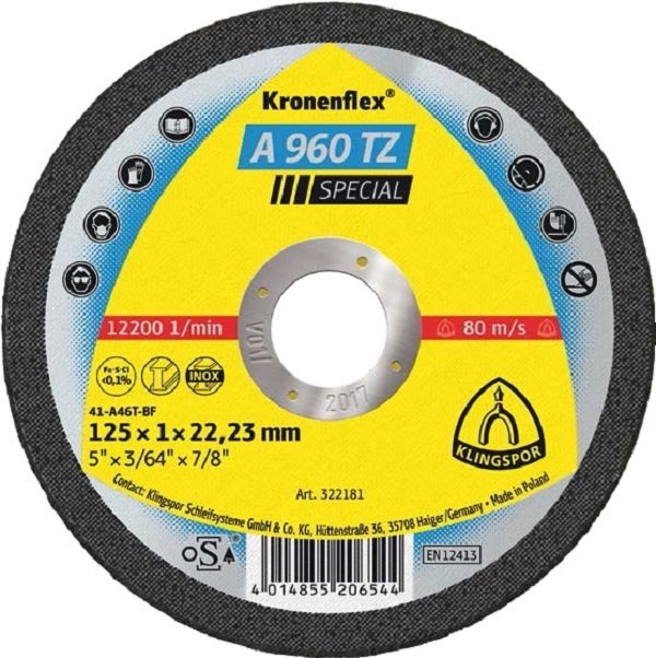 Диск отрезной Klingspor 125х1,0х22,2 Kronenflex A960 Speсial (322181) 125 мм
