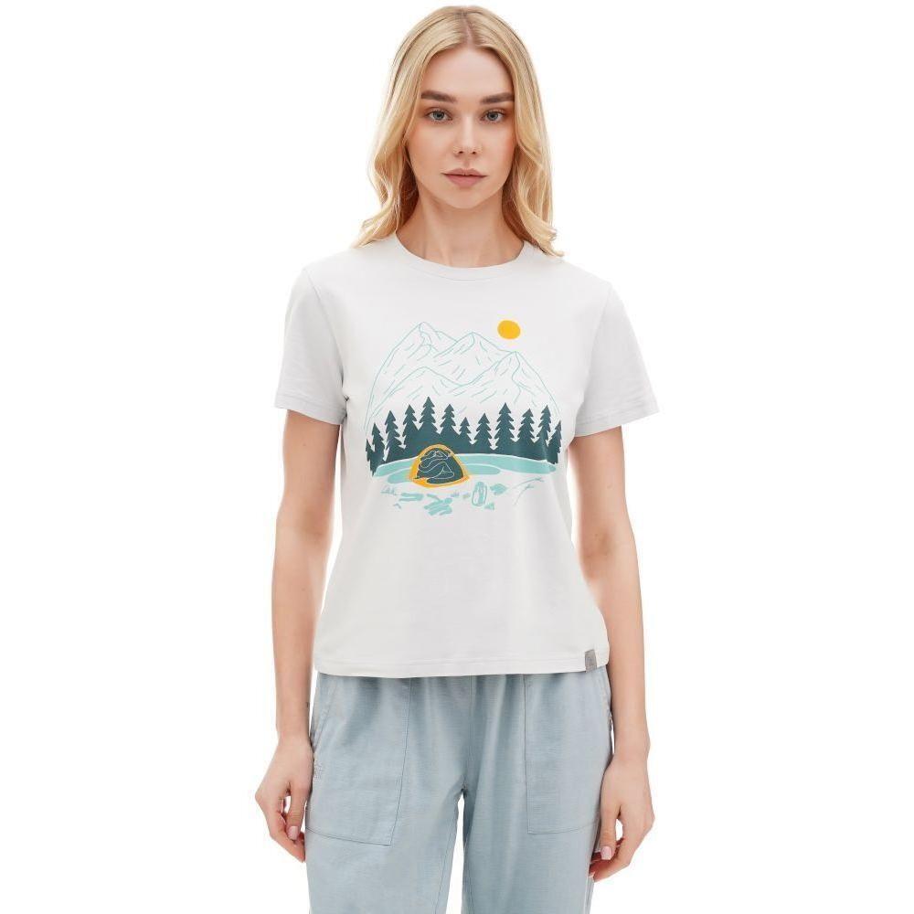 Turbat Romantyka 2 Wmn – це футболка класичного крою з романтичним принтом про гори, який передає атмосферу ночівлі в наметі та нагадує про пригоди серед гір
