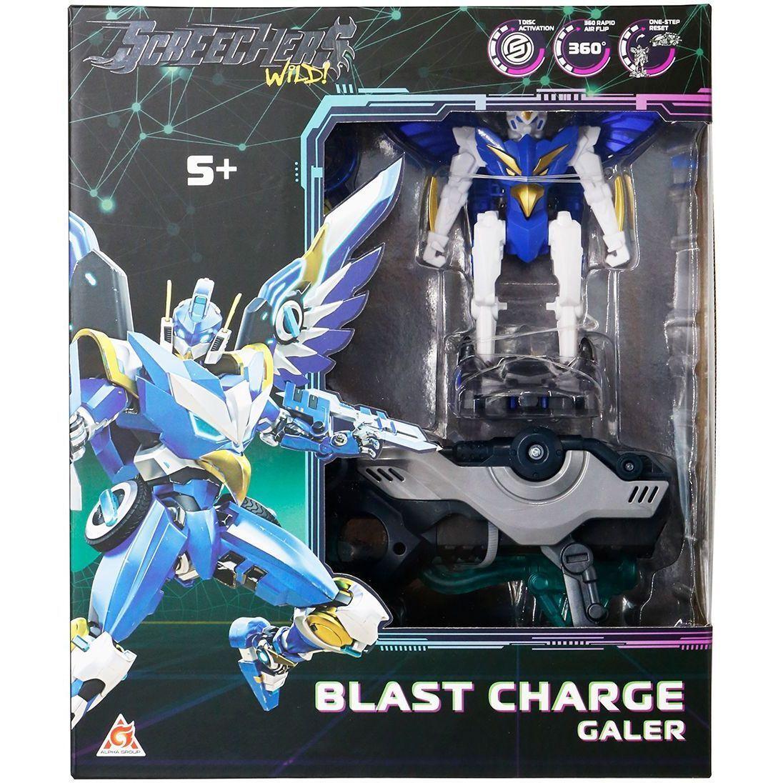 Спробуйте новий спосіб трансформації! Кожен скрічер перевтілюється зі звичайного авто на потужного бойового звіра або робота за допомогою запускача-бластера та магнітного енергодиска! Два варіанти гри - ще більш захоплива гра! Завдяки магнітному механізму, машинка, з'єднавшись із диском, підстрибує, робить перекид у повітрі на 360 градусів і приземляється вже у вигляді могутнього скрічера