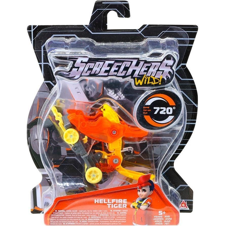 Screechers Wild — це перші в історії машинки, які роблять сальто і трансформуються в фантастичну істоту прямо в повітрі. Щоб ця машинка трансформувалась в містичного тигра потрібно тільки запустити машинку по рівній поверхні. Вона зробить перекид у повітрі та перетвориться в героя. Для того, щоб трансформувати героя назад у машинку, потрібно акуратно притиснути всі деталі та закріпити, і ви знову можете вступати у бій. Машинка-трансформер має міцну конструкцію з надійними кріпленнями та виконана з високоякісного матеріалу.
