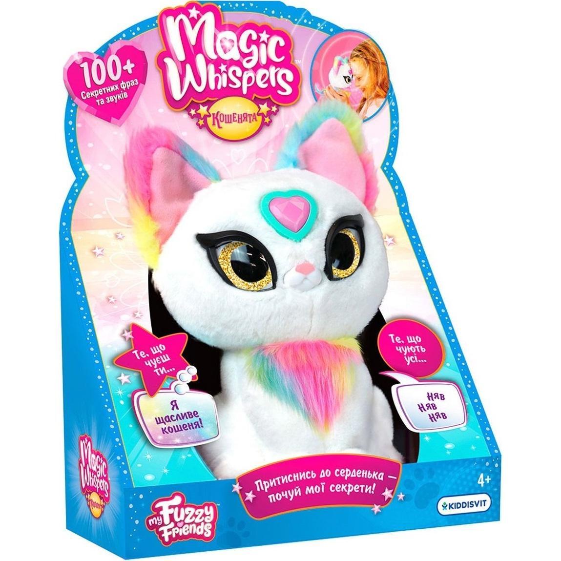 Поринь у світі Magic Whispers – де чарівні кошенята діляться добрими секретами, відповідають на запитання й жартують так, що смієшся лише ти. Приклади їхнє серденько до свого чола або до вушка – і почуй особливе повідомлення, яке підтримає, розважить або просто подарує тепло. Кошеня Magic Whispers – це пухнаста іграшка-друг, яка шепоче лише для тебе.