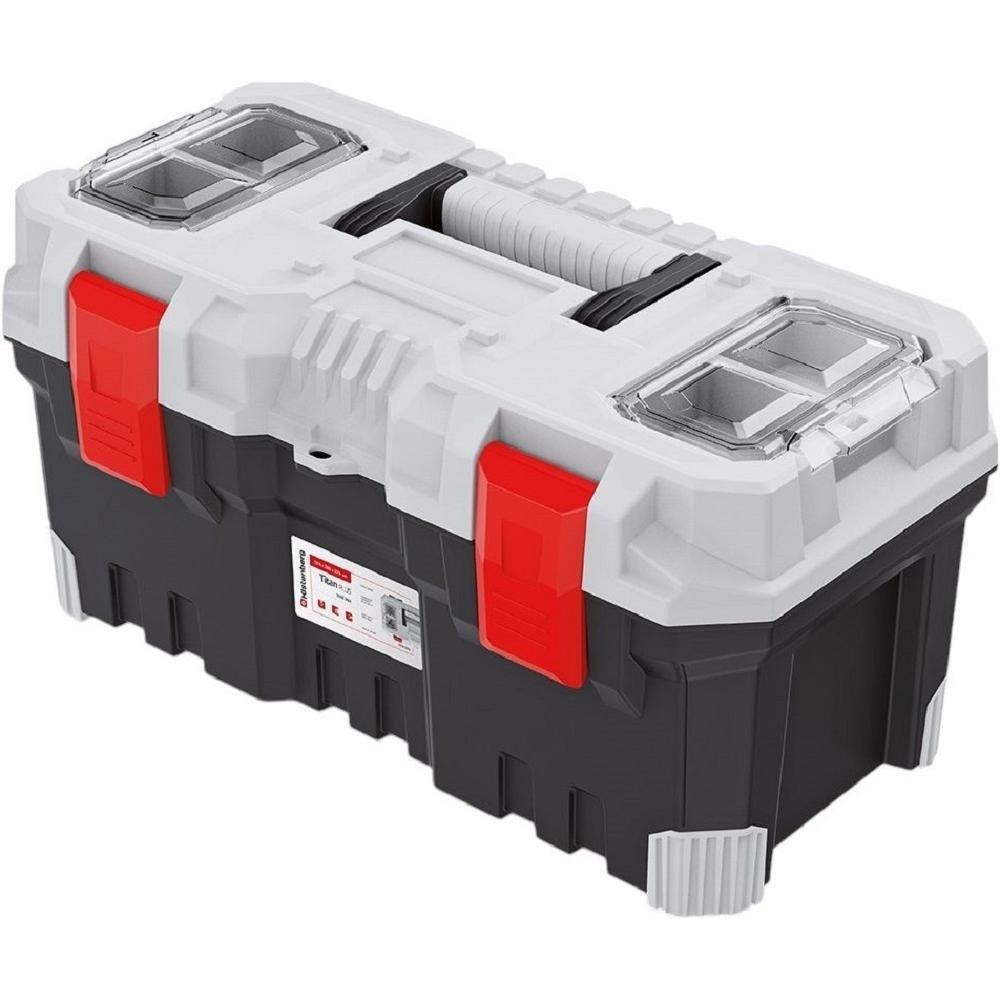 Зручність у використанніДовга ручка у кришці, виготовлена з міцного ABS-пластику, забезпечує комфортне перенесення ящика навіть при повному навантаженні. Цілісний ущільнювач надійно захищає вміст ящика від пилу та вологи, зберігаючи інструменти в ідеальному стані.