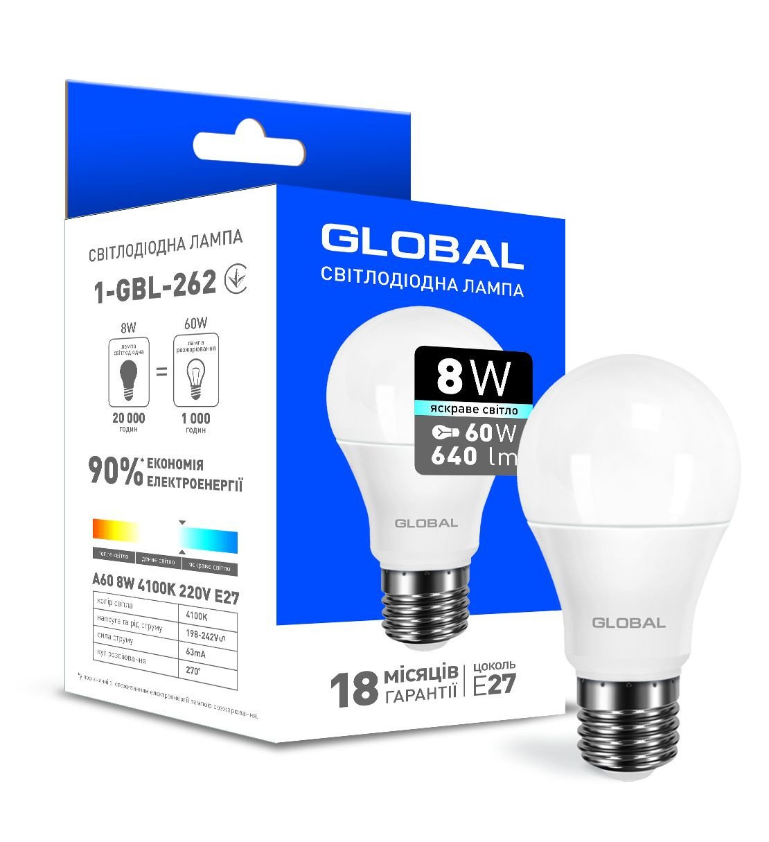 Відгуки про GLOBAL A60 8W яркий свет 220V E27 AL (1-GBL-262)