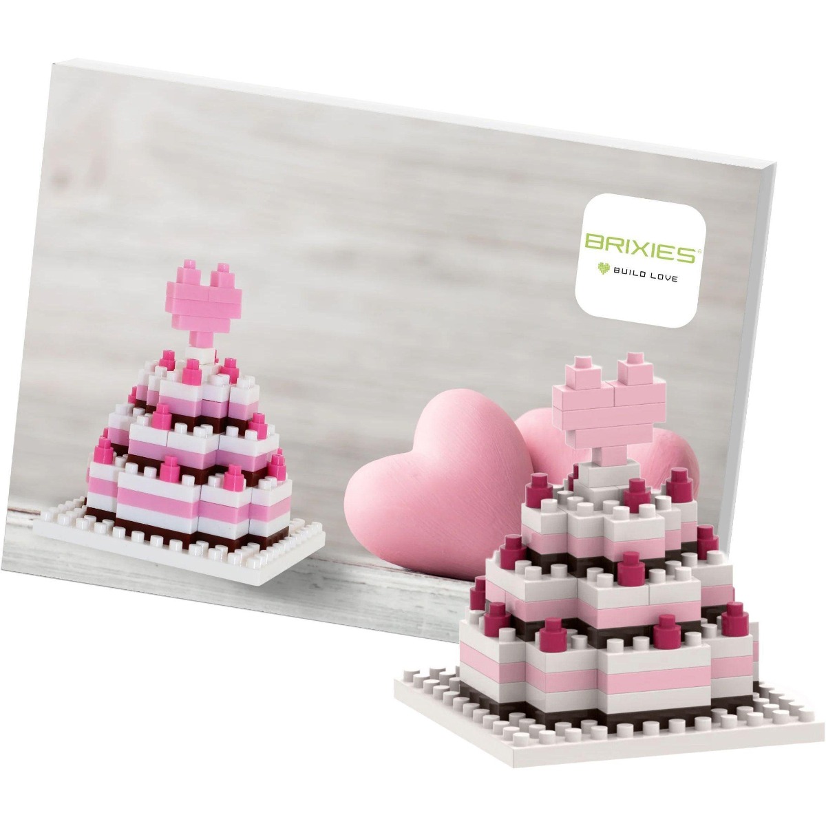 Надсилайте маленькі привітання, які запам'ятовуються надовго! Листівки від BRIXIES дуже весело розпаковувати, складати та збирати. Порадуйте своїх близьких і надішліть їм затишний плед або товариша для ігор з листівкою "Весільний торт".