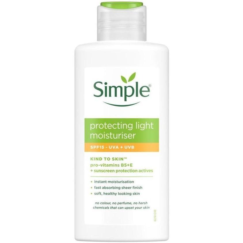 Легкий крем для обличчя Simple Kind To Skin Protecting Light Moisturiser SPF 15 забезпечує миттєве зволоження шкіри, швидко вбирається, не залишаючи липкості або жирного блиску, даруючи шкірі м'якість і здорове сяйво.