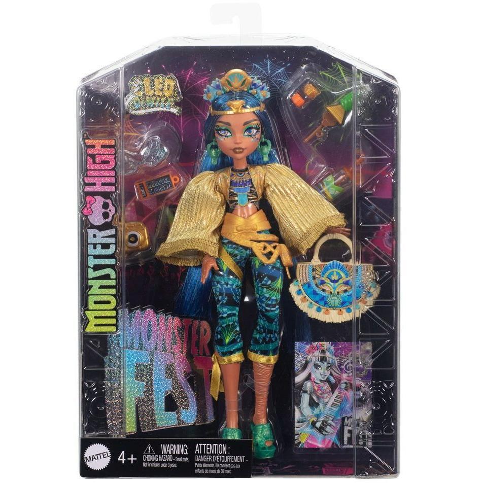 Одна з найкращих частин будь-якого фестивалю - це їжа! Клео де Ніл не може дочекатися, щоб перекусити пірамідальним кебабом і запити його освіжаючим напоєм. Пізніше вона може дістати свою камеру і попозувати для фото на пам’ять. Тематичні аксесуари, такі як два браслети та постер улюбленого гурту, доповнюють можливості для розігрування пригод на музичному фестивалі. Лялька Клео де Ніл серії "Монстро-фестиваль" Monster High - фантастичний подарунок для дітей від 4 років!