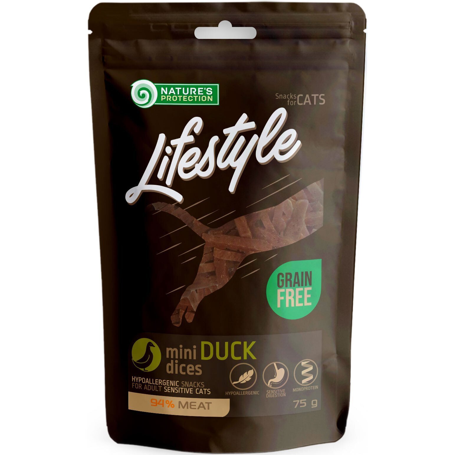 Nature's protection Lifestyle - це високоякісні натуральні та збалансовані ласощі, різних видів і смаків, створені для легких перекусів між основними годівлями та підвищення різноманітності раціону дорослих домашніх тварин. Ароматні ласощі з високим вмістом тваринного білка не містять штучних барвників, антиоксидантів і підсилювачів смаку, в їхньому складі - тільки корисні для організму домашньої тварини - природні інгредієнти.