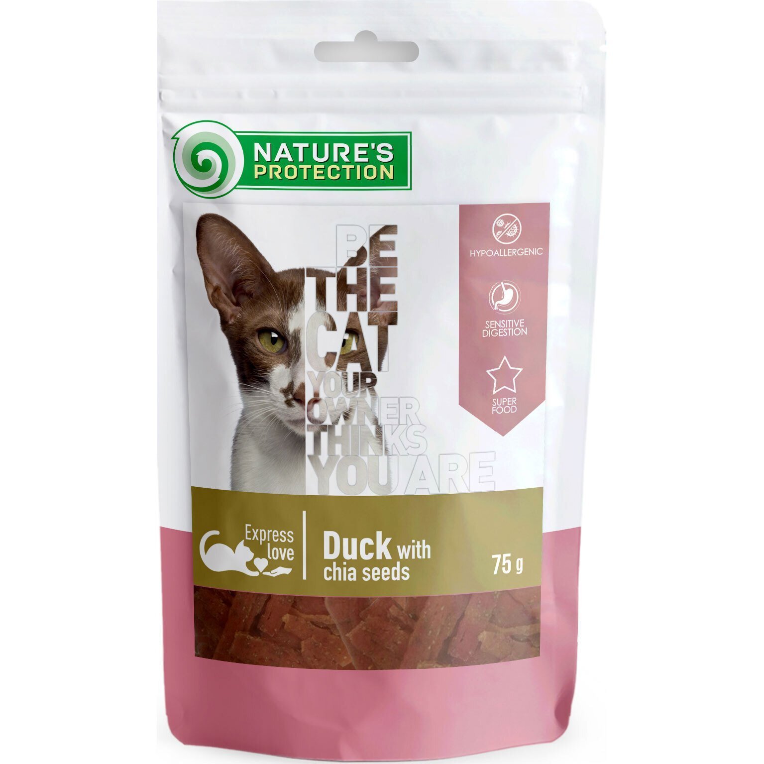 Відгуки про Ласощі для котів Nature's Protection snack for cats with duck with chia seeds 75 г (SNK46113)