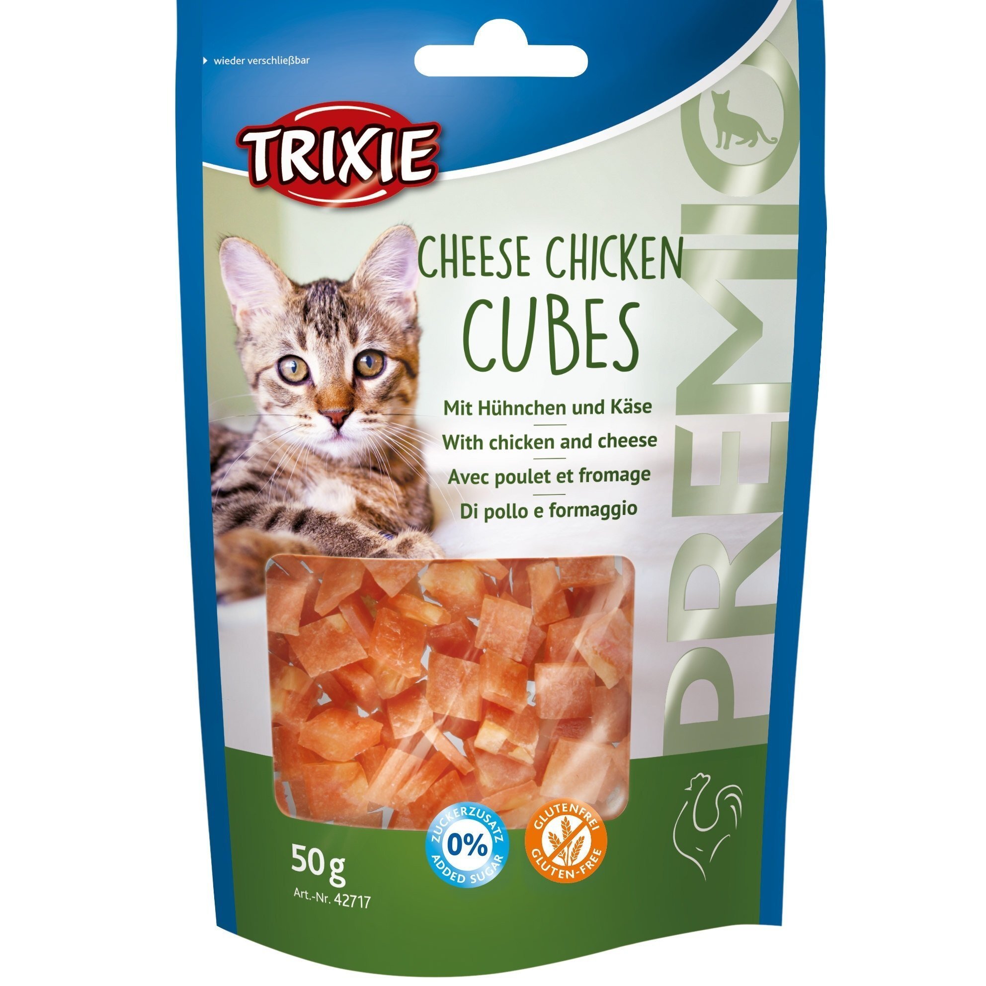 Відгуки про Ласощі для котів Trixie PREMIO Cheese Chicken Cubes сирно-курячі кубики 50гр (4011905427171)