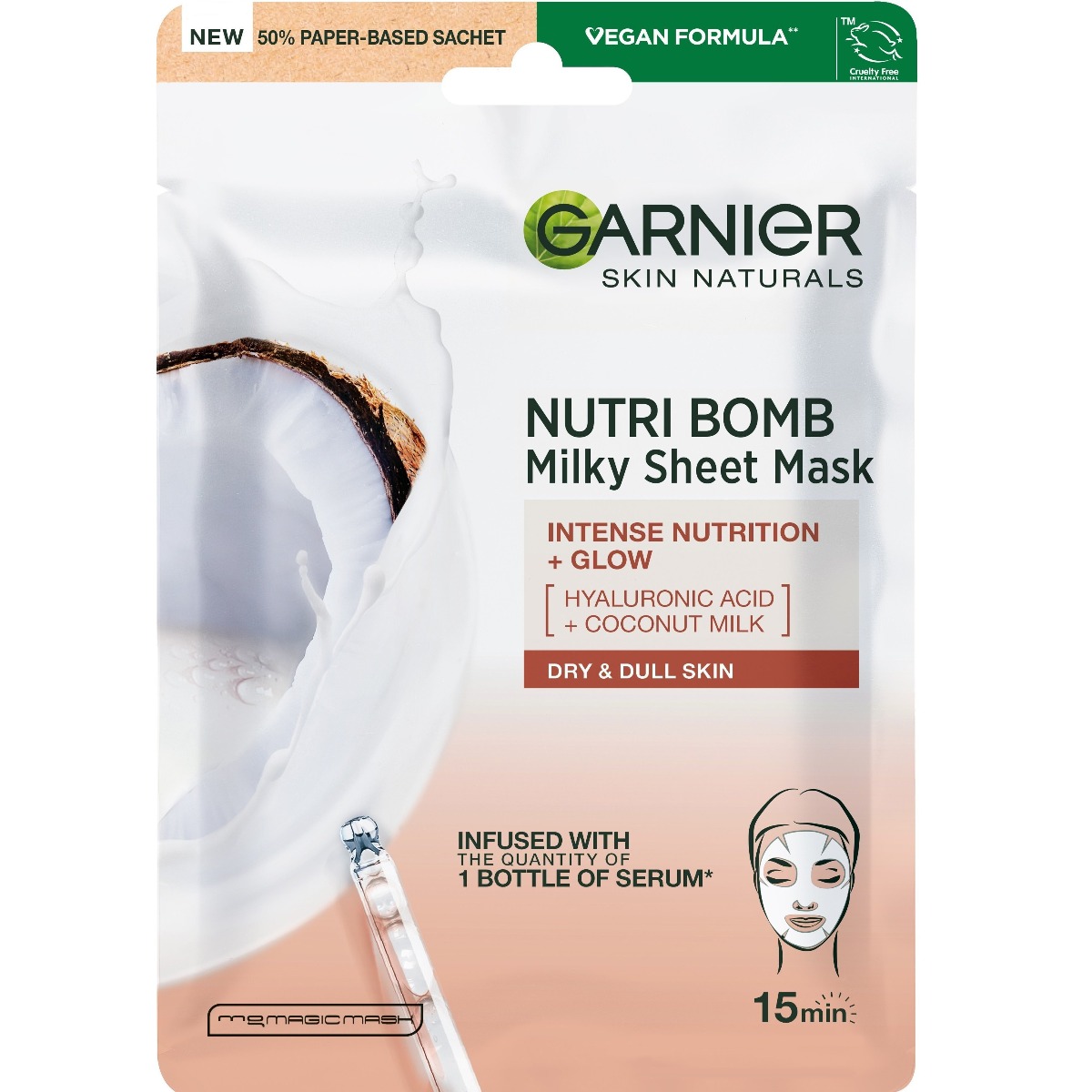 Відгуки про Маска тканинна Garnier Skin Naturals Живлення з кокосовим молоком 28г (3600542319768)