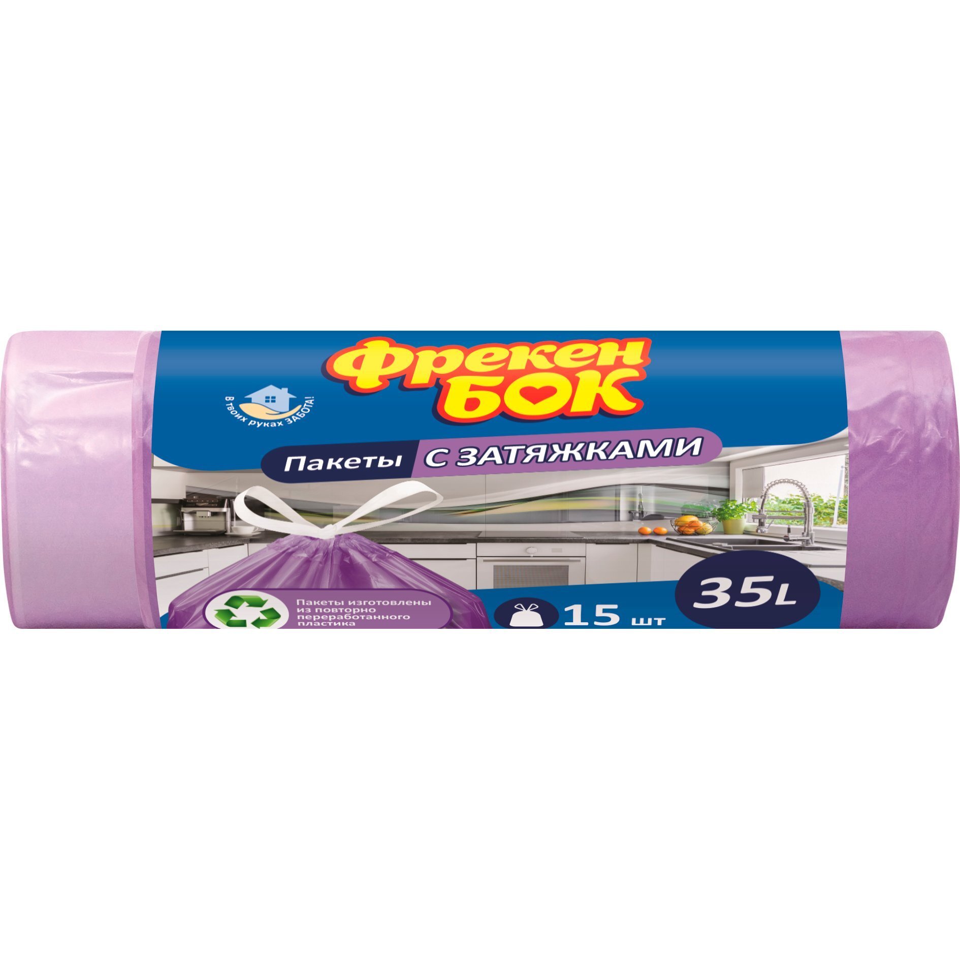 Відгуки про Пакети для сміття із затяжкою Фрекен Бок Стандарт фіолетові 35л х 15шт (4820048485234)