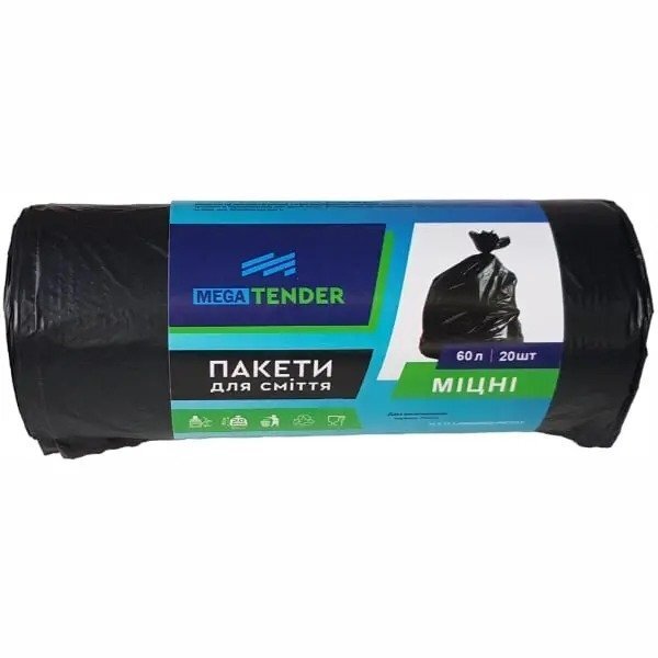 Пакети для сміття Mega Tender міцні 60л х 20шт (4820267360077)