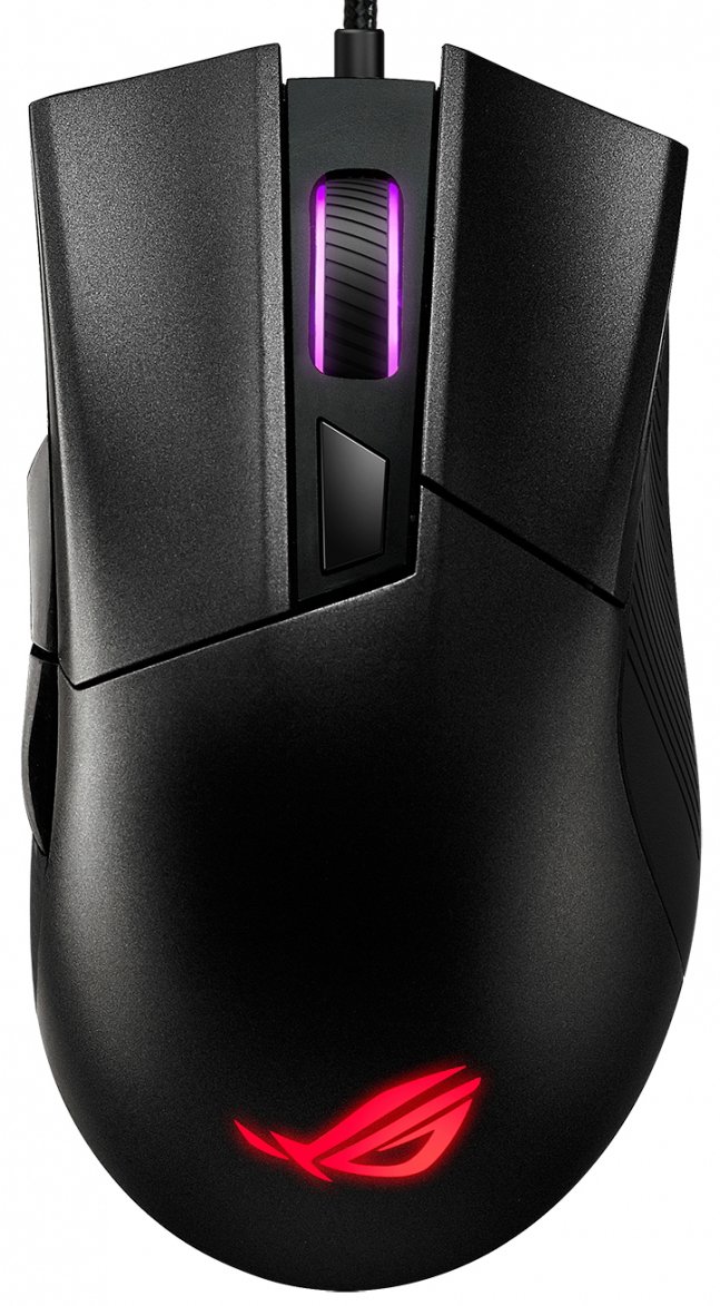 Ергономічна оптична ігрова миша, оптимізована для ігор жанру FPS, з можливістю заміни перемикачів, повнокольорового підсвічуванням Aura Sync і кнопкою швидкого перемикання чутливості