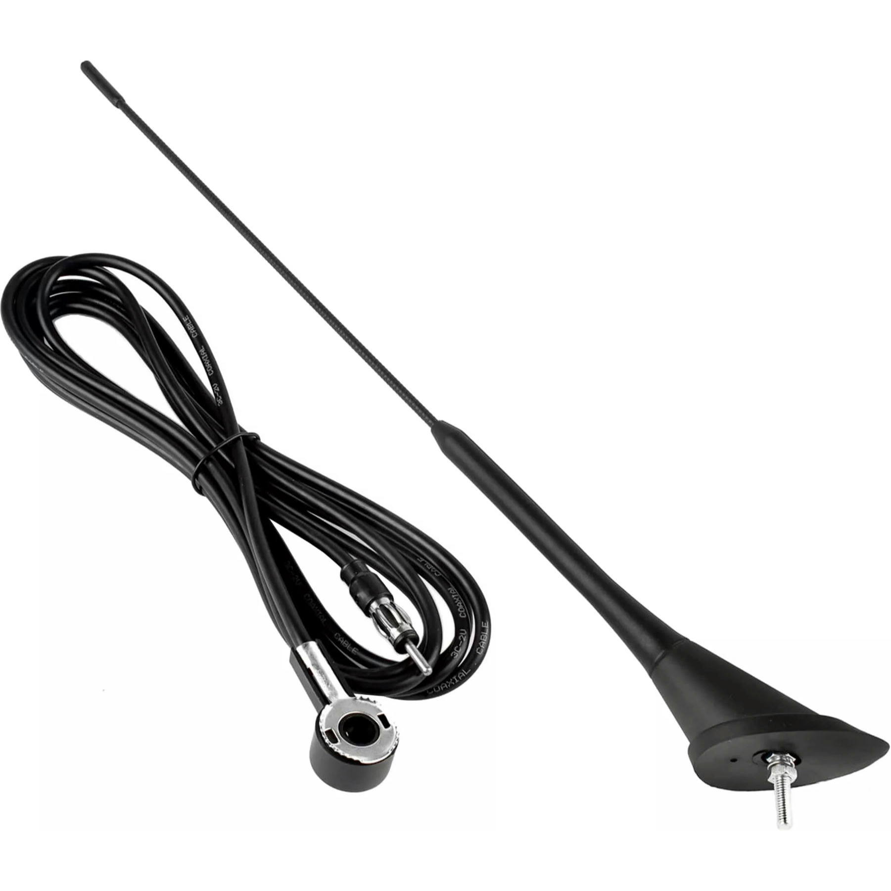 Проста у монтажі, підходить для більшості моделей автомобілів. Довжина антени становить 40 см, що оптимально для стабільного приймання сигналу, а довжина кабелю – 3 м, що дозволяє легко під’єднати її до приймача. Діаметр різьби 5 мм робить антену сумісною з широким спектром автомобільних приймачів.