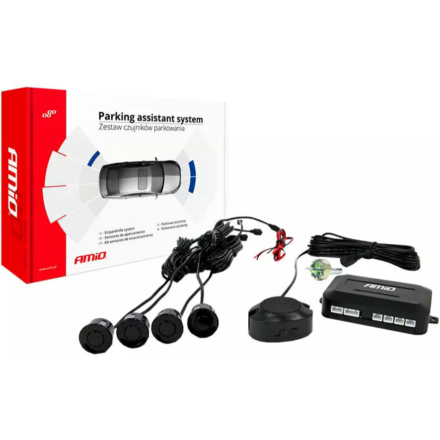 Датчик паркування Amio 01567 – це пристрій, який допомагає паркуватися та рухатися заднім ходом. Він працює за принципом сонара: випромінює ультразвукові хвилі, які, відбиваючись від перешкод, дозволяють визначити відстань до них. Під час руху заднім ходом пристрій виявляє перешкоди на шляху автомобіля та попереджає водія звуковим сигналом. Звуковий сигнал може працювати в трьох режимах: високий, низький та вимкнений. Для зміни режиму використовується перемикач на корпусі пристрою.