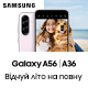 Зустрічайте Galaxy A56! Завдяки тонкому корпусу (7.4 мм) та легкій вазі (198 г) смартфон дуже зручно тримати у руці. Удосконалені камери гармонійно вбудовані в оновлений лінійний дизайн. Вибирайте свій ідеальний колір: графіт, світло-сірий, оливковий та рожевий.