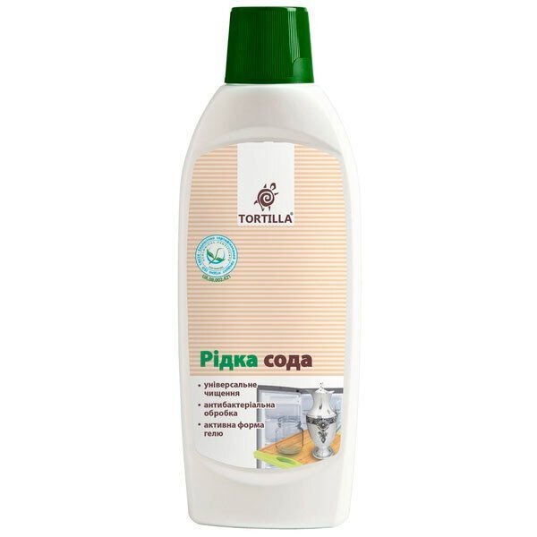 Рідка сода "Тортілла" — універсальний очисний та мийний засіб для різних поверхонь (пластик, кераміка, дерев'яні поверхні), раковин, ванн, фаянсового, порцелянового, емальованого, керамічного посуду, срібла, обробних дерев'яних дощок та ін.
