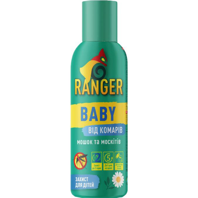 З аерозольним репелентним засобом Ranger Baby відпочинок буде комфортним і безпечним! Він м'яко й ефективно захищає дітей від 2 років від комарів, кліщів, москітів, мошок та інших комах.