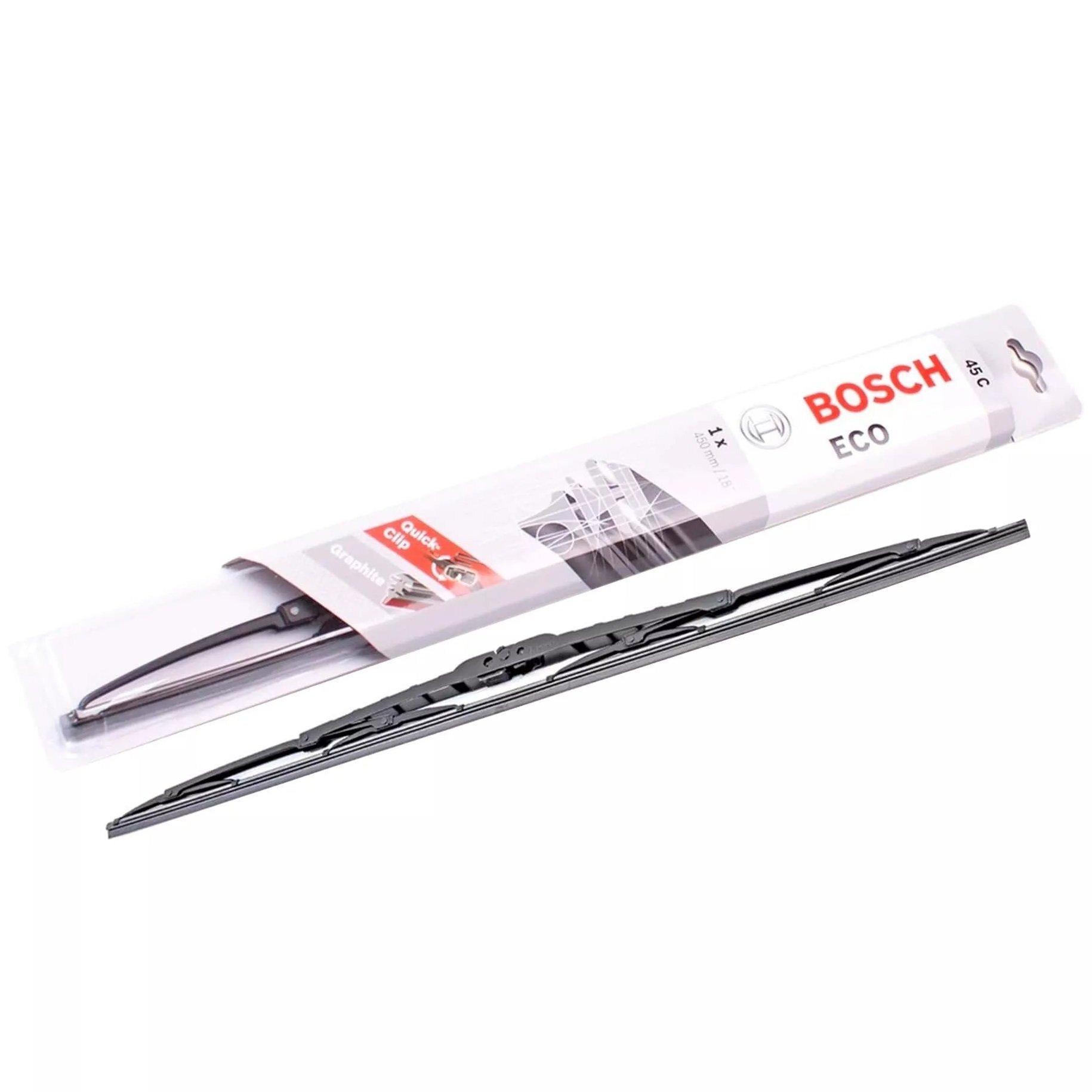 Автомобільні двірники серії Bosch були випущені легендарною компанією, як бюджетна лінійка. Головна їхня перевага полягає в невисокій ціні та гідній якості. Каркас двірника виконаний з металу високої якості. Для захисту від корозії, всі металеві частини склоочисника покриті подвійним шаром порошкової фарби. Особливу увагу слід приділити гумці склоочисника. Вона зроблена методом лиття, з натурального каучуку. Завдяки такому способу виготовлення, лезо отримує ідеальну робочу кромку, на якій відсутні задирки та нерівності. Гумка не вступає в реакцію з агресивними компонентами омивача лобового скла, не пересихає під впливом сонячних променів і високих температур навколишнього середовища. Не тріскається і не стає крихкою на морозі. Для тихого і плавного ковзання двірника по склу, на лезо нанесено тонкий шар графітового напилення, яке також захищає її від агресивного впливу навколишнього середовища. Ще однією особливістю Bosch Eco є можливість заміни гумки окремо від всього механізму коромисел. Сумісний з автомобілями Alfa Romeo, Audi, Fiat, Kia, Mazda, Mitsubishi, Nissan, Seat, Skoda, SsangYong, Subaru, Toyota, Volkswagen.