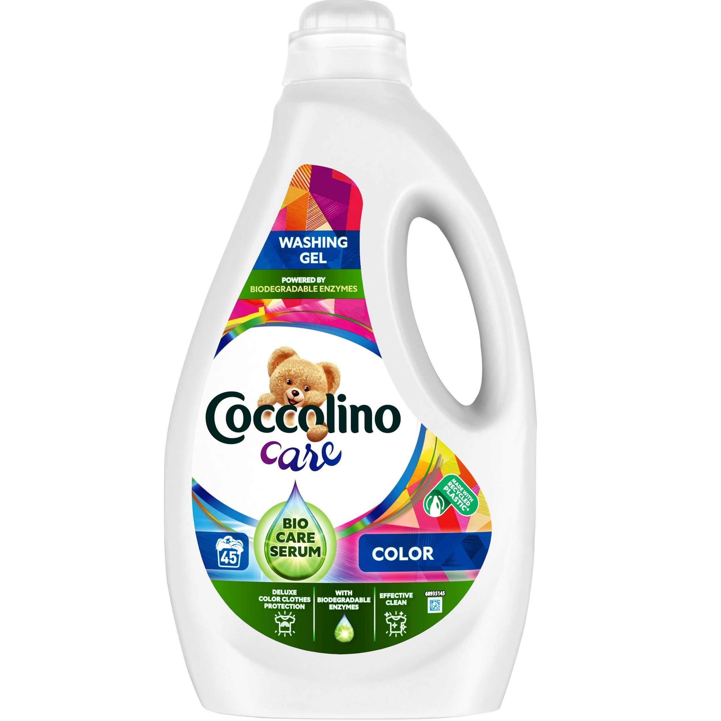 Гель для кольорового Coccolino – це новинка серед пральних засобів цієї марки. Формула рідкого порошку від Coccolino поєднує активні очисні елементи, які легко усувають навіть складні плями, разом з кондиціонером для білизни і захистом волокон тканин. Технологія Care Serum проникає у волокна тканин та покращує їх еластичність та зовнішній вигляд одягу. Все це робить гель для прання кольорових речей від Coccolino універсальним рідким порошком – чистить, пом'якшує, продовжує термін служби улюбленого одягу.