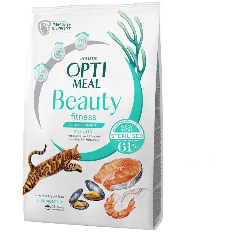 Optimeal Beauty Fitness Sterilised Healthy Weight - якісний сухий раціон для дорослих котів, який не містить зернових і створений на основі морепродуктів