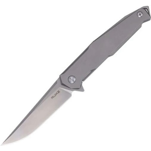 В екземплярі застосовується сталь марки. Особливість такої сталі - у високому вмісті вуглецю, спочатку вона була створена для газових турбін. Це дуже популярний і якісний ножовий матеріал. Металевий сплав пройшов через кріогенну обробку і має стійкість до корозії. Твердість клинка досягає 58-60 одиниць за шкалою Роквелла. Це досить високий показник як для такого типу інструментів. Досить простого натискання на односторонню «гарду» з протиковзними насічками, що виступає з руків'я в складеному стані. Обух має скіс на повну довжину, сходиться зі спусками в ребрі до кінчика леза. Поверхня клинка пройшла через дробоструминну обробку. Руків'я ножа виготовлена з використанням матеріалу TC4. Це титанове руків'я, у якого практично немає виступаючих елементів або насічок. Фіксувальний замок Frame lock має запобіжну систему Beta Plus і знімний наконечник. Він перешкоджає стиранню, деформації та заїданню від контакту двох металів. Одностороння знімна кліпса ножа має пластинчасту конструкцію. Також вона оснащена стопором контрастного кольору, завдяки якому виключається ризик випадкового зісковзування. Матеріалом проставкою руків'я є титан. Проставка виступає за руків'я наскрізним отвором для всіляких шнурків, карабінів і мотузок. Колір руків'я представлений у двох варіантах - сірому і сріблястому. Модель призначається для туристів, мандрівників, любителів активного проведення часу. Також може використовуватися вдома в побуті. Виріб - чудовий варіант на кожен день.