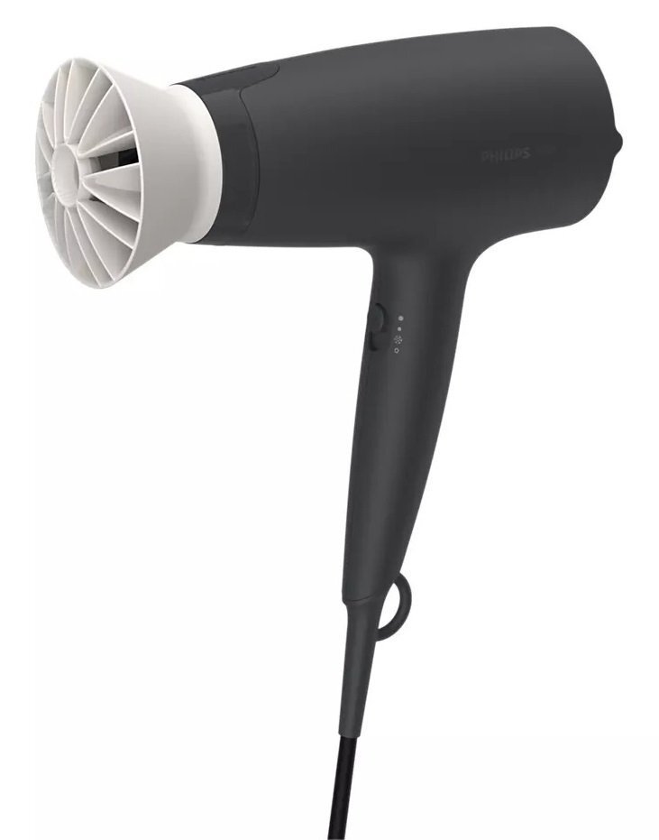 3 режиму температури і швидкостіЦей фен має 3 встановлені режими швидкості/нагріву, завдяки яким можна легко і швидко зробити ідеальну зачіску.