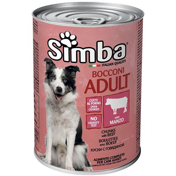 Simba шматочки з яловичиною - це повнораціонний корм для дорослих собак усіх розмірів. шматочки в желе, приготовані з якісних інгредієнтів, таких як курка та індичка, джерело білка і мінералів, запікаються в духовці, щоб поліпшити їх природний смак і стимулювати щоденний апетит вашого вихованця. Рецептура була розроблена з використанням спеціальної комбінації вітамін амінів A-D3-E для задоволення щоденних потреб вашого вихованця в харчуванні. Без додавання барвників або консервантів.