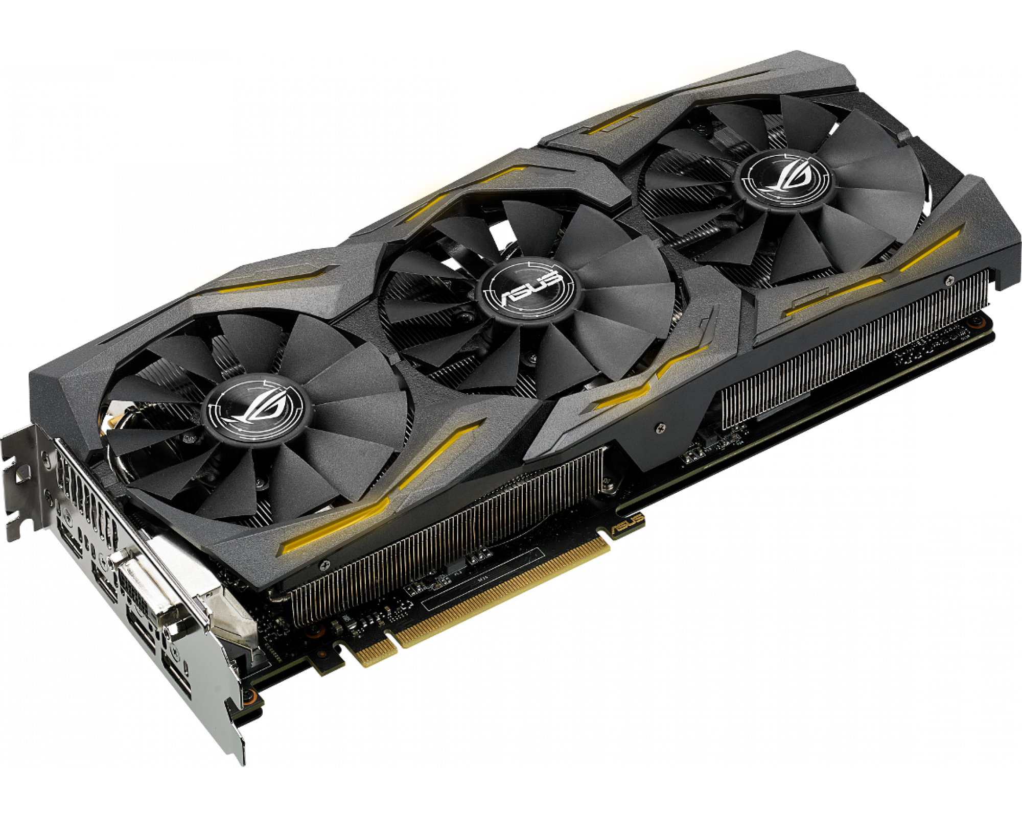 Система охлаждения геймерского компьютера может быть неэффективна из-за того, что алгоритм работы корпусных вентиляторов учитывает лишь температуру центрального процессора, хотя во время длительных игровых сессий температура графического процессора зачастую бывает значительно выше. Чтобы устранить эту проблему, видеокарты серии ROG Strix оснащаются двумя 4-контактными разъемами для системных вентиляторов с регулировкой на основе температуры графического процессора.