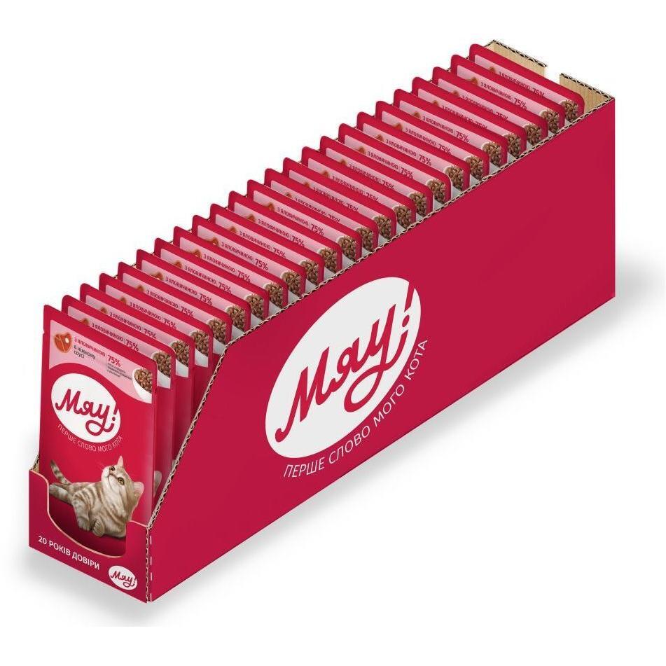 Упаковка вологого корму Мяу для дорослих котів з яловичиною в ніжному соусі 24х85г (B2250701)