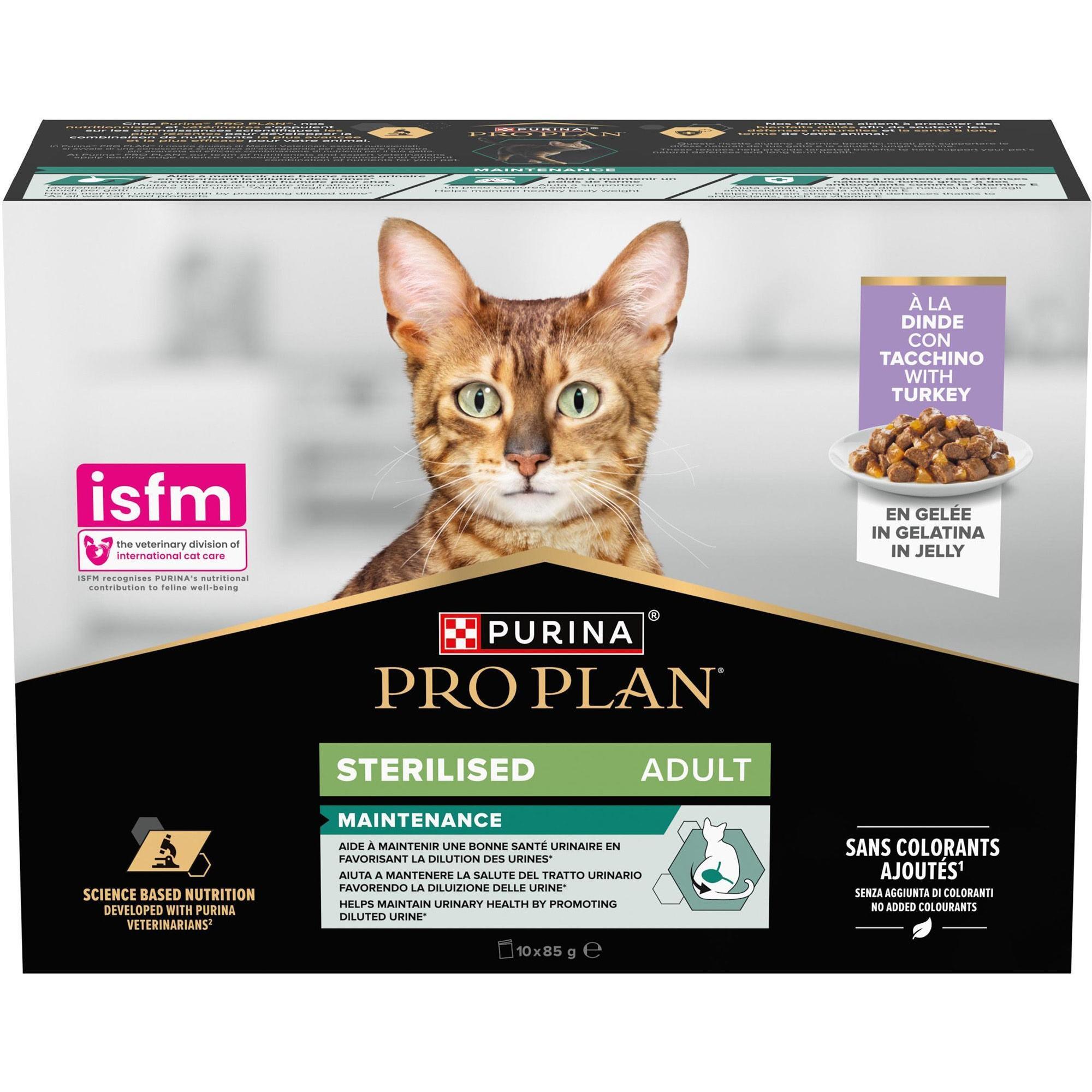Отзывы о Вологий корм для котів Purina Pro Plan Sterilesed шматочки у желе з індичкою 10x85г (8445290968685)